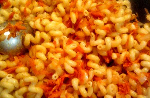 9. Смешать макароны с овощной поджаркой.